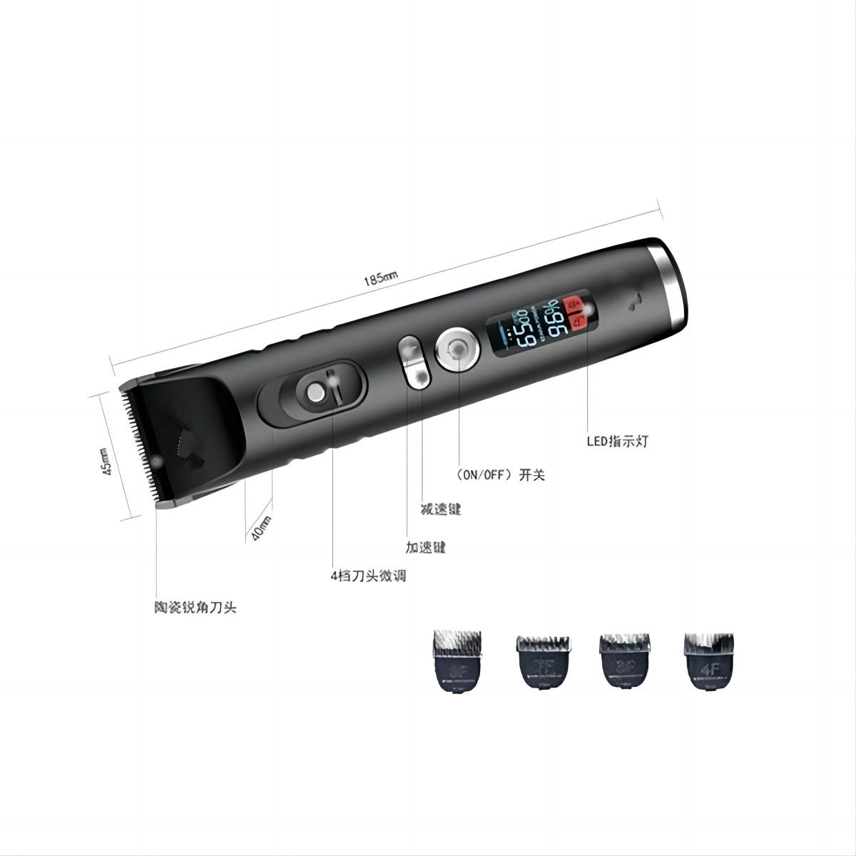 | Προδιαγραφές λεπίδας | 4 τύποι λεπίδων (3F/4F/5F/7F) + 4 περιοριστικές χτένες (3/6/9/12 mm) |