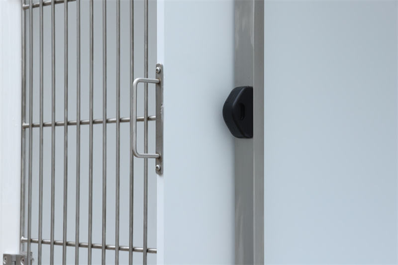 Διαθέτοντας πόρτες αυτόματου κλειδώματος δύο σημείων στάνταρ, το ελάχιστο διάκενο μεταξύ κάθετων ράβδων και οπών ασφάλισης εξασφαλίζει σχεδόν αθόρυβη λειτουργία ακόμα και όταν τα πόδια των κατοικίδιων αγγίζουν ελαφρά το πάνελ της πόρτας. Ένα πλαίσιο διαμέτρου 8 mm, κάθετες ράβδοι 6 mm και εγκάρσιες ράβδοι 8 mm σχηματίζουν συλλογικά μια ασφαλή και στιβαρή δομή κλουβιού.